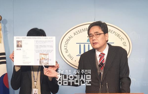 곽 의원은 이날 페이스북을 통해 <'청주터미널 특혜 매각 및 청와대 관여 의혹' 관련 기자회견>이라는 제목으로 글을 게재했다.