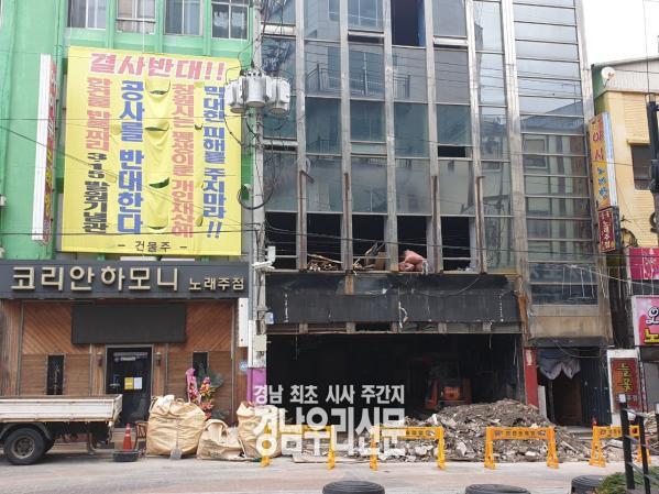 당시 공사현장에는 2층 낙화물 방지 구조물조차 없었고 포크레인과 인부들이 1층에서 철거공사를 진행하고 있었다. 특히 이곳은 오동동 상점가 밀집지역으로 야간 보행자 안전시설이 미흡해 사고로 이어질 수 있는 상황이다. 현장 관리 감독해야 할 소장은 현장에 없었고 관리사무실에도 문이 잠긴 상태로 창원시의 안전 불감증의 민낯을 드러냈다.