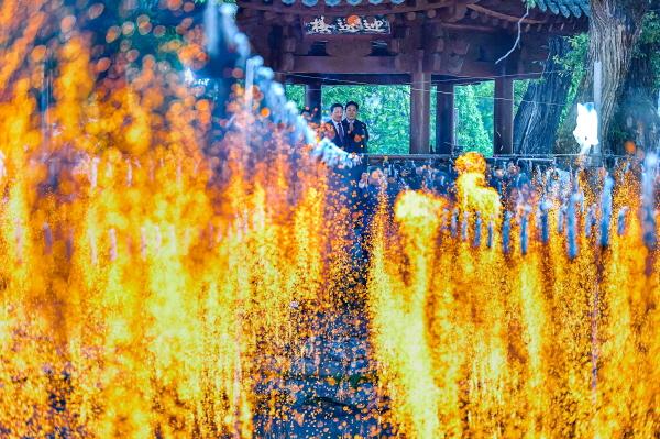 [경남우리신문]함안 무진정 연못 위로 불꽃이 떨어진다. 곳곳에서 탄성이 터지다가, 이내 조용한 침묵이 감돈다. 바람결 따라 떨어지는 낙화봉의 불씨는 6500여 명 관람객의 가슴 깊이 번져갔다. 5일 무진정 일원에서 열린 이번 행사는 세계에서 유일한 ‘함안 낙화놀이’의 미학을 보여주며 방문객들에게 잔잔한 감동을 선사했다.