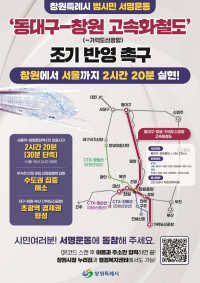 [경남우리신문]창원특례시는 ‘동대구-창원-가덕도신공항 고속화철도’의 ‘제5차 국가철도망 구축계획’ 반영을 촉구하기 위해 10월 17일부터 11월 16일까지 약 한 달간 ‘동대구-창원 고속화철도 조기 반영 촉구’ 범시민 서명운동을 전개한다.   ▲창원특례시,‘동대구-창원 고속화철도 조기 반영 촉구’ 범시민 서명운동 실시     ©경남우리신문 편집국 현재...