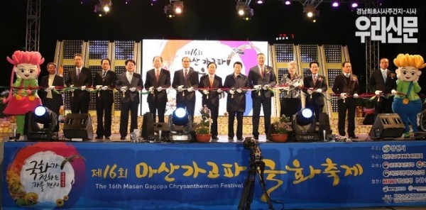 ‘국화가 전하는 가을편지’라는 슬로건으로 마련되는 ‘제16회 마산가고파국화축제’가 28일 저녁 안상수 창원시장, 이주영 국회의원, 김하용 창원시의회 의장을 비롯한 시·도의원, 알렉산드르 사비노프 야쿠츠크시의회 의장을 비롯한 러시아 야쿠츠크시 대표단,지역 기관단체장, 시민 등 수천명이 참석한 가운데 개막식을 갖고 오는 10월 29일부터 11월 7일까지 열흘간 마산항 제1부두 일원에서 펼쳐진다.