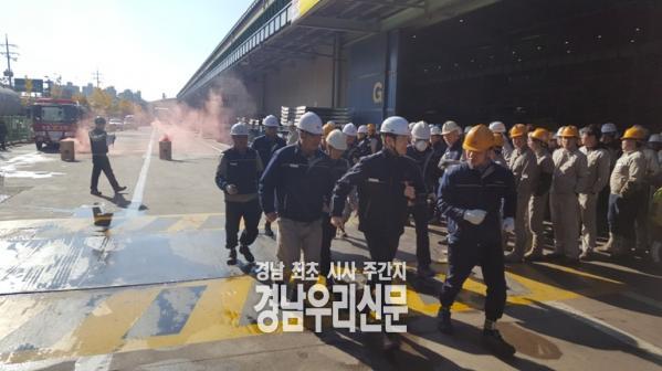 마산소방서(김길규) 삼진119안전센터는 지난 16일 마산합포구 소재 (주)건화에서 소방공무원 및 관계자 등 45명이 참여하여 현장활동 대응능력 향상을 위한 합동 소방훈련을 실시했다.