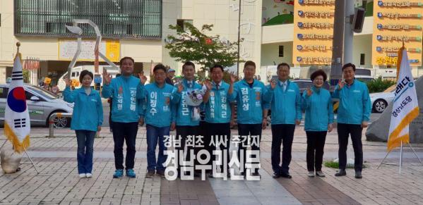 이어 "다른 두 후보들은 도지사가 되면 중앙정치로 진출하려는 야심 때문에 서울만 쳐다볼 수밖에 없다"며 "가장 젊고 패기 있는 경제 도지사 김유근 후보를 내세워 경남 경제의 불꽃을 다시 피우겠다"고 필승을 다졌다.