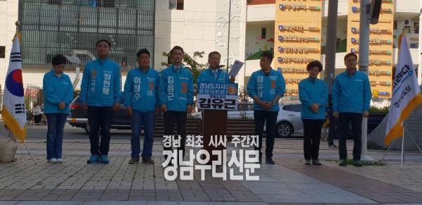 이날 김유근 경남도지사 후보는 출정식 기자회견을 통해 "오늘 후보중 제일 먼저 후보 등록 후 기분이 착찹하다.더불어 민주당 김경수 후보에게 드루킹 사건에 대해 말하지 않겠고 자유한국당 김태호 후보에게는 관용차 사건과 공무원 가사도우미 사건들도 이야기 하지 않겠다"고 밝히면서"오직 정책에 관한 정책토론민을 할 테니 두 후보는 당당하게 TV토론에 나와달라"며"이번 경남도지사 선거는 자칫 '깜깜이 선거'가 될 수도 있다"고 지적했다.