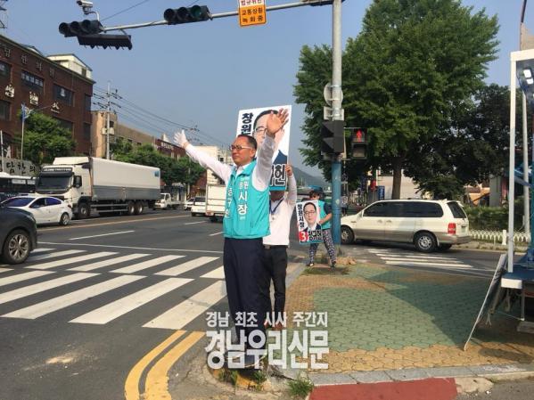 정규헌 후보는 이날 오전 8시 ‘서마산IC’ 거리인사를 시작으로 ‘창원 상남시장’, ‘홈플러스 사거리’, ‘동마산IC’, ‘시외버스주차장’, ‘마산어시장’ 등지를 돌며 강행군을 이어갔다.