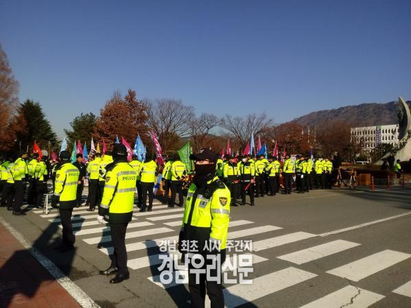 이날 오전 10시 문재인 대통령의 경남도청 방문에 앞서 도청 정문앞에서 시민단체들의 정상적인 집회임에도 경남학생인권조례 반대 집회에 경찰들이 둘러싸고 원천봉쇄하여 출입자의 신분을 일일이 확인했다. 경찰의 과잉대처로 민원인들의 불만이 폭주 했다.