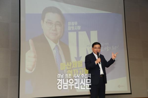 마산제일여고측 초청으로 이뤄진 이날 특강에서 허성무 시장은 ‘마산의 최고 자랑거리 중 하나는 지금의 대한민국 민주주의를 뿌리내리게 한 민주화의성지”라며, “우리나라 4대 민주화 운동 중 4·19혁명, 부마민주항쟁이 마산에서 시작되었고, 6·10 민주항쟁도 가장 격렬하게 일어났던 곳이다. 마산의 역사가 대한민국 민주주의 역사라는 자부심을 가지기 바란다”라고 강조했다.