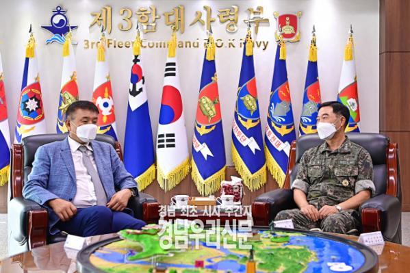 [경남우리신문]STX엔진 박기문 대표이사는 올 5월 해군 2함대 방문에 이어 7월 22일 남방 해역 방어를 책임지는 해군 제3함대사령부를 위문 방문했다.