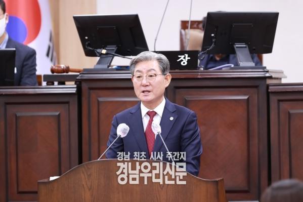 오 군수는 의령군의회에서 2023년도 예산안에 대한 시정연설을 통해 민선 8기 군정 비정 비전을 제시했다.