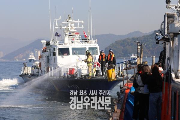 훈련은 낚시어선 화재발생· 해상추락자 발생· 기름 유출 발생 등의 상황을창원해경이 접수해 구조기관 초동 조치, 인명구조(해상· 항공 수색), 화재진압, 해양오염 방제 순으로 진행됐다.