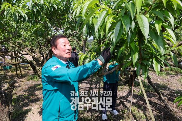 조근제 함안군수, 복숭아 솎기 작업 참여‥ 농촌일손돕기 적극 추진