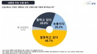 여론조사공정(주)이 펜앤마이크의 의뢰로 지난 7월 29일 전국 만19세 이상 남녀1001명을 대상으로, 구조화된 설문지를 이용"선생님께서는 문재인 대통령의 현 국정수행에 대해 어떻게 평가하십니까"라는 질문에 "'잘하고 있다' 39%, 잘못하고 있다 41.8%, 보통이다 16.1% "라고 조사됐다.   ▲7월말 文 대통령 국정 수행 평가, '잘하고 있다'...
