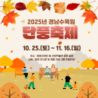[경남우리신문]경상남도수목원(원장 강명효)에서는 오는 10월 25일부터 11월 16일까지 깊어 가는 가을, 단풍이 절정을 이루는 시기에 맞춰 ‘2025년 경상남도수목원 단풍축제’를 개최한다고 밝혔다.   이번 단풍축제는 처음 열리는 행사로, 아름다운 단풍을 배경으로 한 전시 및 체험 중심의 축제로 방문객들이 자연 속에서 가을을 온전히 느낄 수 있도록 다양한...
