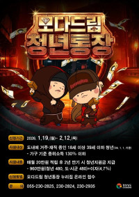 [경남우리신문]경상남도(도지사 박완수)와 경남투자경제진흥원(원장 오재호)은 청년의 자산 형성과 지역 정착을 돕는 ‘모다드림 청년통장’ 상반기 참여자를 이번 달 19일부터 2월 12일까지 모집한다고 밝혔다.   ‘모다드림 청년통장’은 도내 사업장에서 일하는 18세에서 39세까지의 청년을 대상으로 매월 20만 원씩 2년간 적립하면 경남도와 시군이 480만 원을...