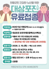 [경남우리신문]의령군은 10일부터 65세 이상 의령군민을 대상으로 대상포진 예방접종 지원사업을 시행한다고 4일 밝혔다.   대상포진은 면역력이 저하된 고령층에서 발병 위험이 높고, 발병 시 극심한 통증과 신경통 등 합병증으로 이어질 수 있어 예방접종의 중요성이 강조되고 있다. 특히 고령자의 경우 대상포진 발병 후 신경통이 장기간 지속될 수 있어 사전 예방이...