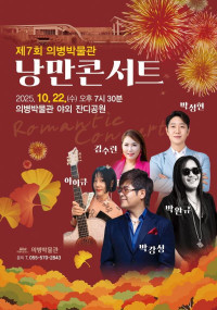 [경남우리신문]의령군 의병박물관은 오는 22일 오후 7시 30분, 박물관 잔디공원에서 ‘제7회 가을 낭만콘서트’를 개최한다.   깊어가는 가을밤, 군민과 함께 낭만과 음악으로 함께하는 이번 공연은 야외 무료공연으로 진행되며, 감미로운 선율과 풍성한 무대로 특별한 추억을 선사할 예정이다.   ▲2025 낭만콘서트     ©경남우리신문 편집국 이번 무대에...