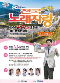 [경남우리신문]하동군에서 대한민국 대표 장수 프로그램인 KBS1 TV <전국노래자랑>이 열린다.   하동군은 오는 4월 7일 섬진강 수변공원(하동읍 비파리 128-1)에서 ‘전국노래자랑 하동군 편’ 공개 녹화가 진행된다고 밝혔다.   ▲전국노래자랑 포스터     ©경남우리신문 편집국 이번 행사는 군민과 관광객이 함께 어우러지는 화합의 무대로...