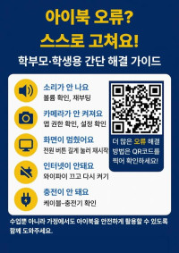 [경남우리신문]경상남도교육청(교육감 박종훈)은 도내 모든 학교에 학생용 스마트단말기(아이북) 자가 진단 프로그램 ‘아이북 고장? 바로 해결!’을 개발해 배포한다.   ▲ 아이북 고장 바로 해결(교실 게시용 포스터)     ©경남우리신문 편집국 이번 프로그램은 아이북을 활용한 수업 과정에서 발생하는 교사의 업무 부담을 줄이고, 학생이 스스로 기기 문제를...